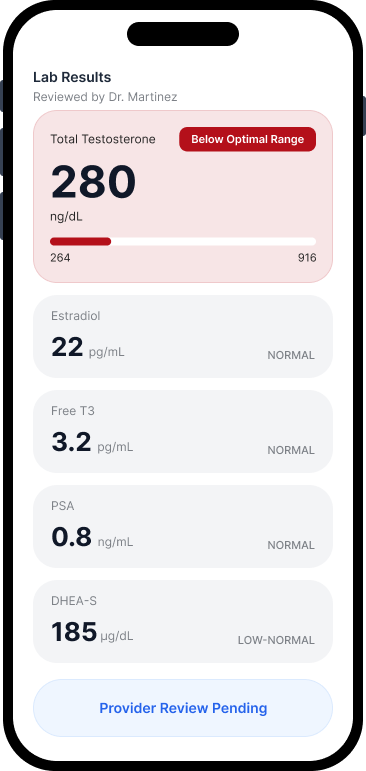- Licensed U.S. providers specializing in men’s hormone and preventive health